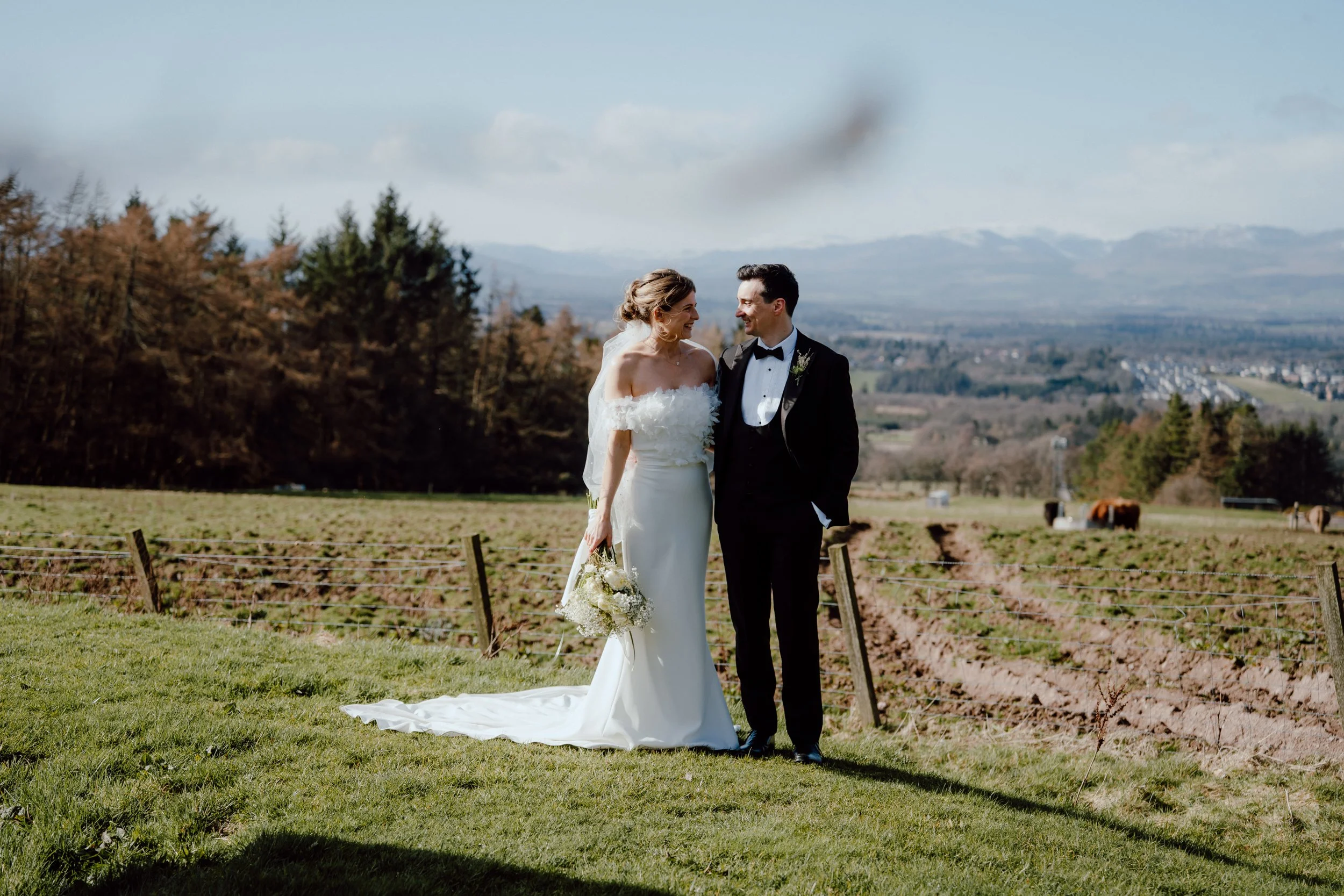 It’s always refreshing to see a tuxedo make an appearance — a quiet shift from the familiar kilts and tartans, and such a timeless look. A lovely reminder that Scottish weddings can take many forms, each bringing its own sense of style.